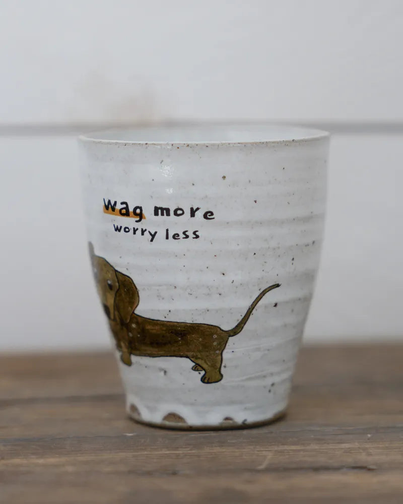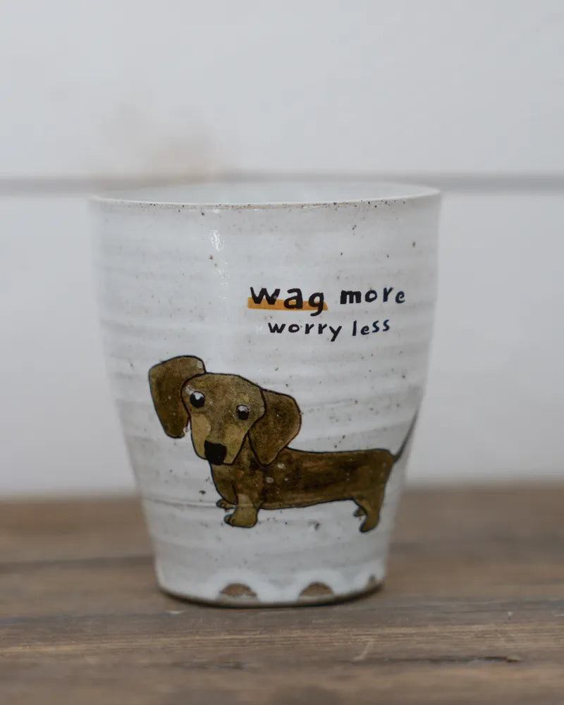 Handmade ceramic mugs crafted with love, care and paw-sitivity. This one features a illustration of a Dachshund.